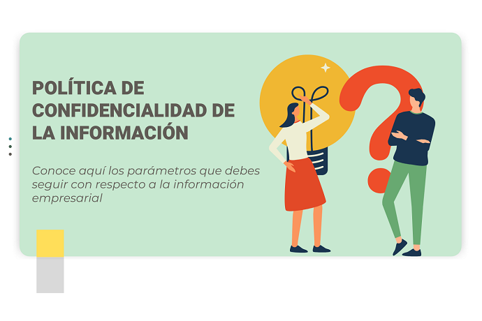 Así es nuestra política de confidencialidad de la información Recuerda que debes tratar en forma estrictamente confidencial toda información no pública que llegue a tu conocimiento relacionada con…